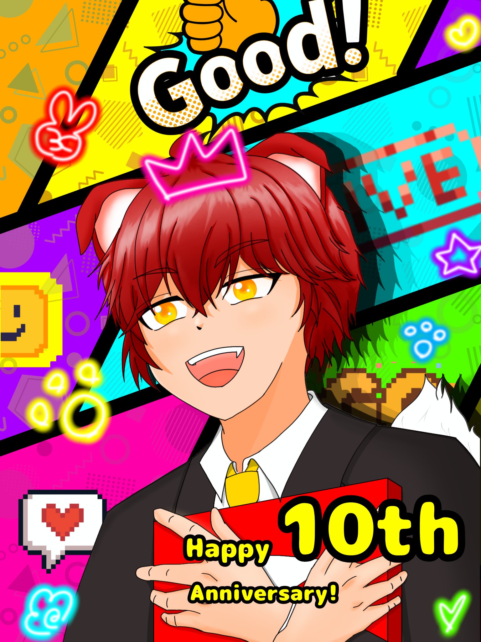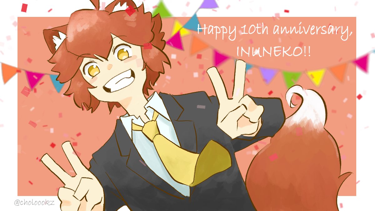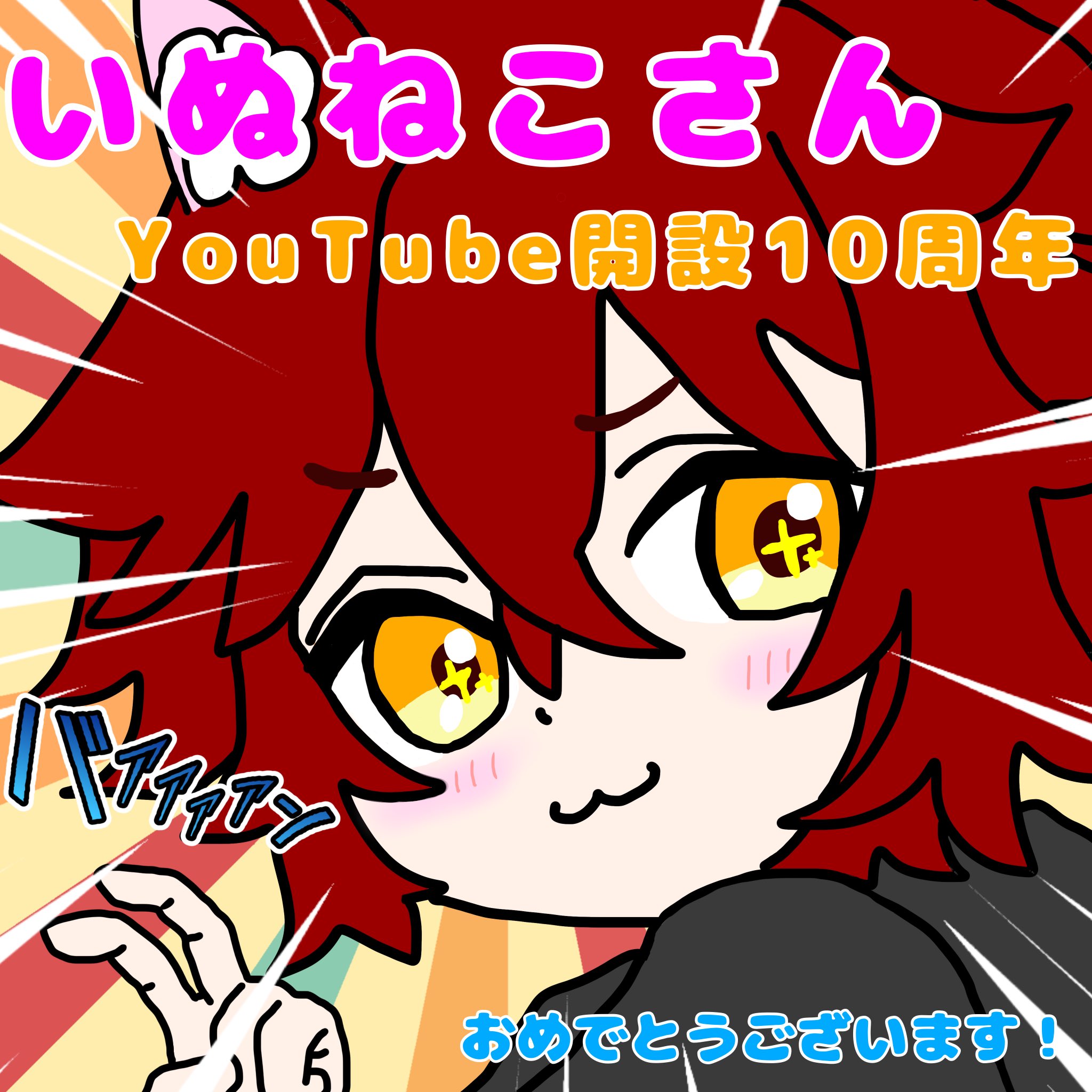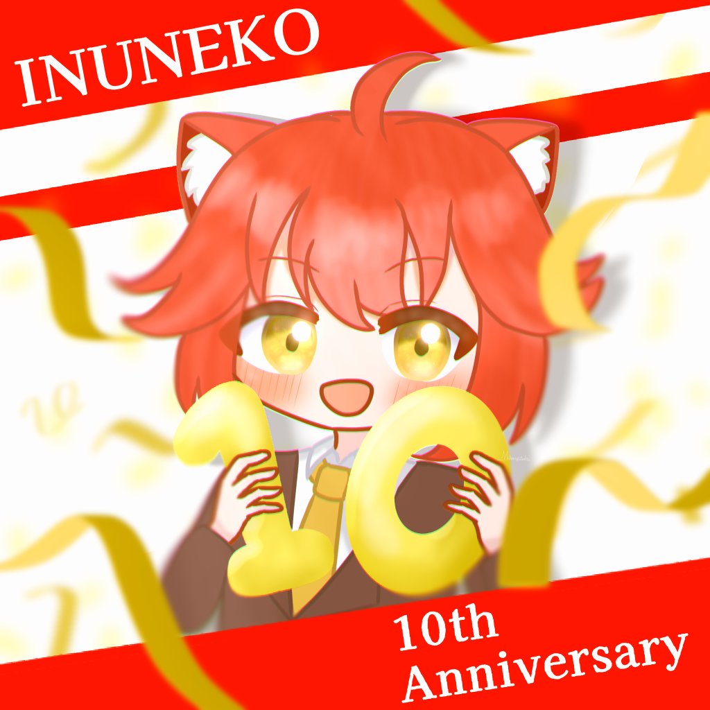 トレードマークである耳と尻尾、ゲームコントローラーでいぬねこさんを表し、中央の数字はYouTube開設10周年を表現しています。