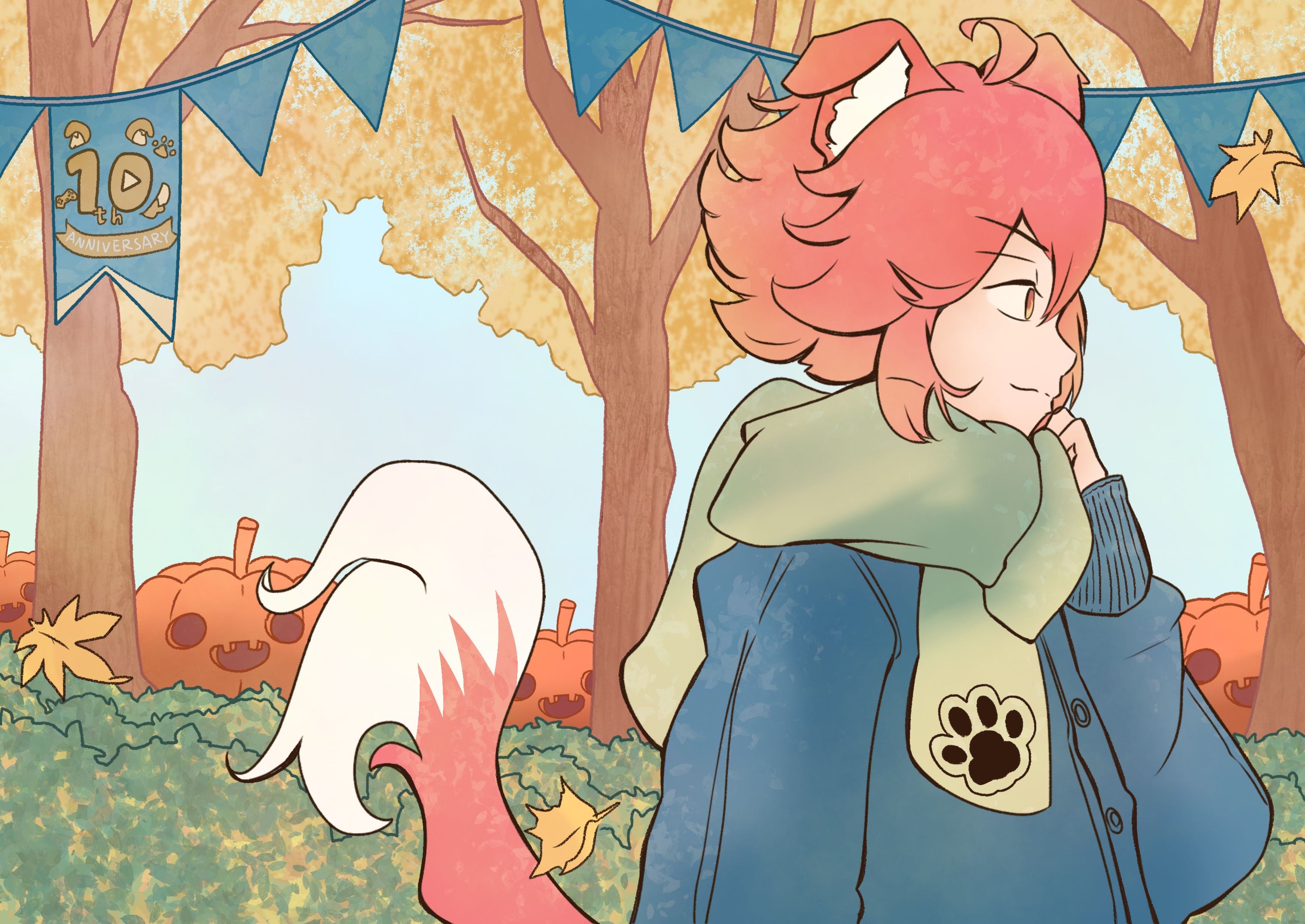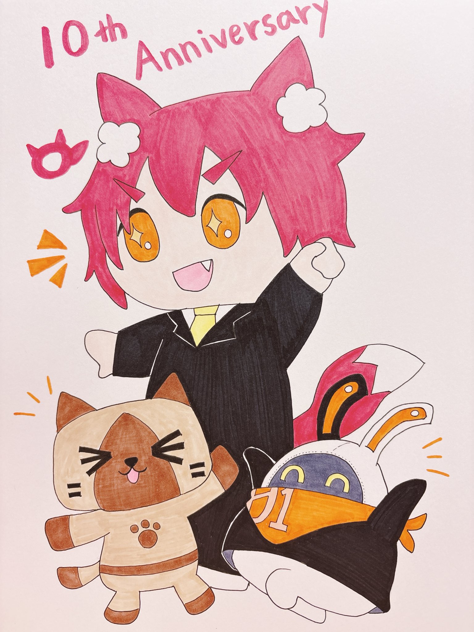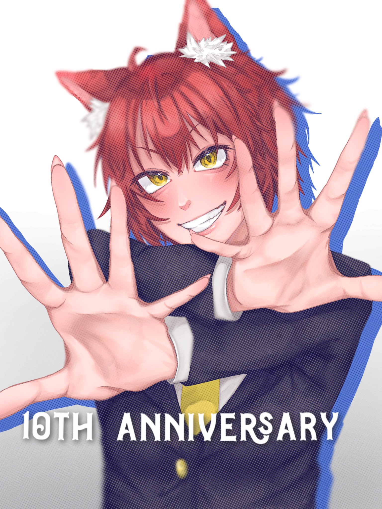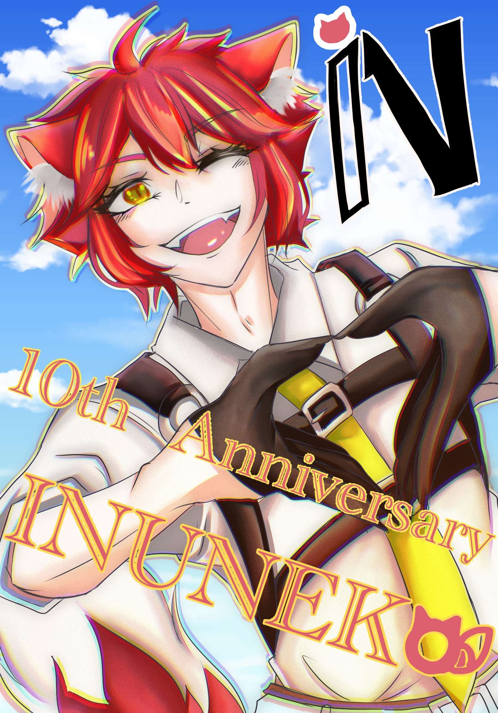 トレードマークである耳と尻尾、ゲームコントローラーでいぬねこさんを表し、中央の数字はYouTube開設10周年を表現しています。